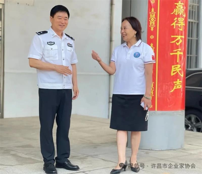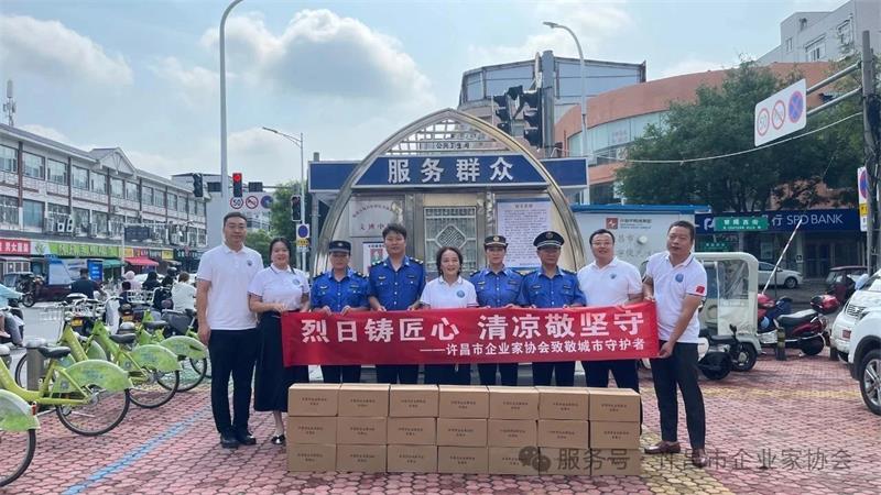6月30日上午,許昌市企業(yè)家協(xié)會(huì)秘書長(zhǎng)黃玉霞帶領(lǐng)部分會(huì)員企業(yè)代表,先后來到許昌市公安局交通管理支隊(duì)和魏都區(qū)城市管理綜合執(zhí)法大隊(duì)文博中隊(duì),開展"夏日送清涼"慰問活動(dòng),為堅(jiān)守崗位的一線交警和城管隊(duì)員送去定制礦泉水,在高溫酷暑中傳遞社會(huì)關(guān)懷。
